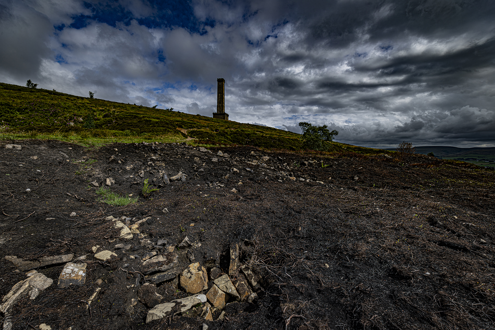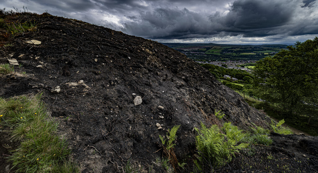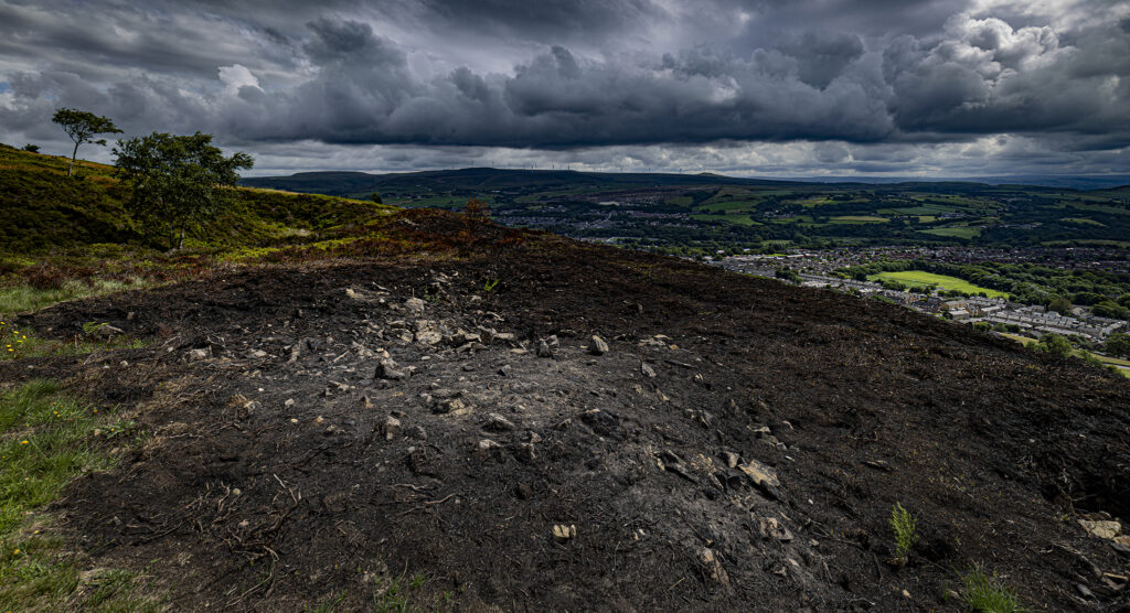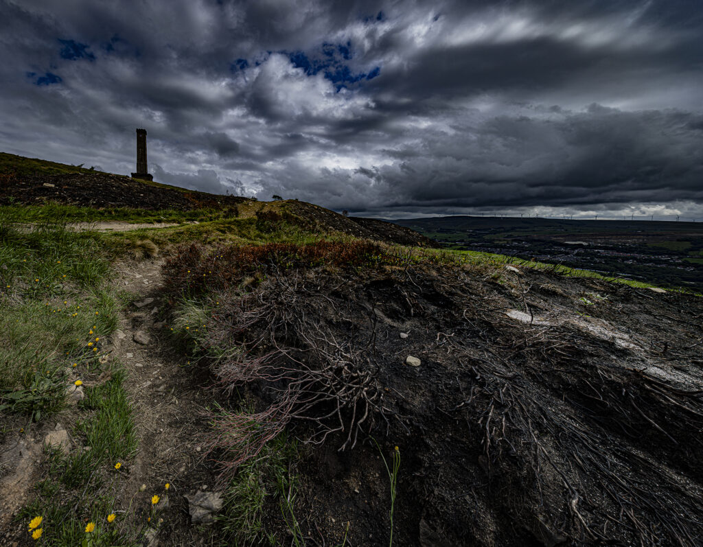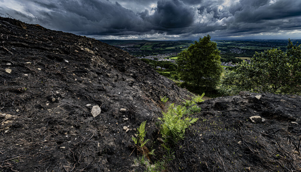 Holcombe Hill after the grass fires. A normally picture postcard location looks barren and dramatic. Just shows how fragile the countryside is in adverse weather.