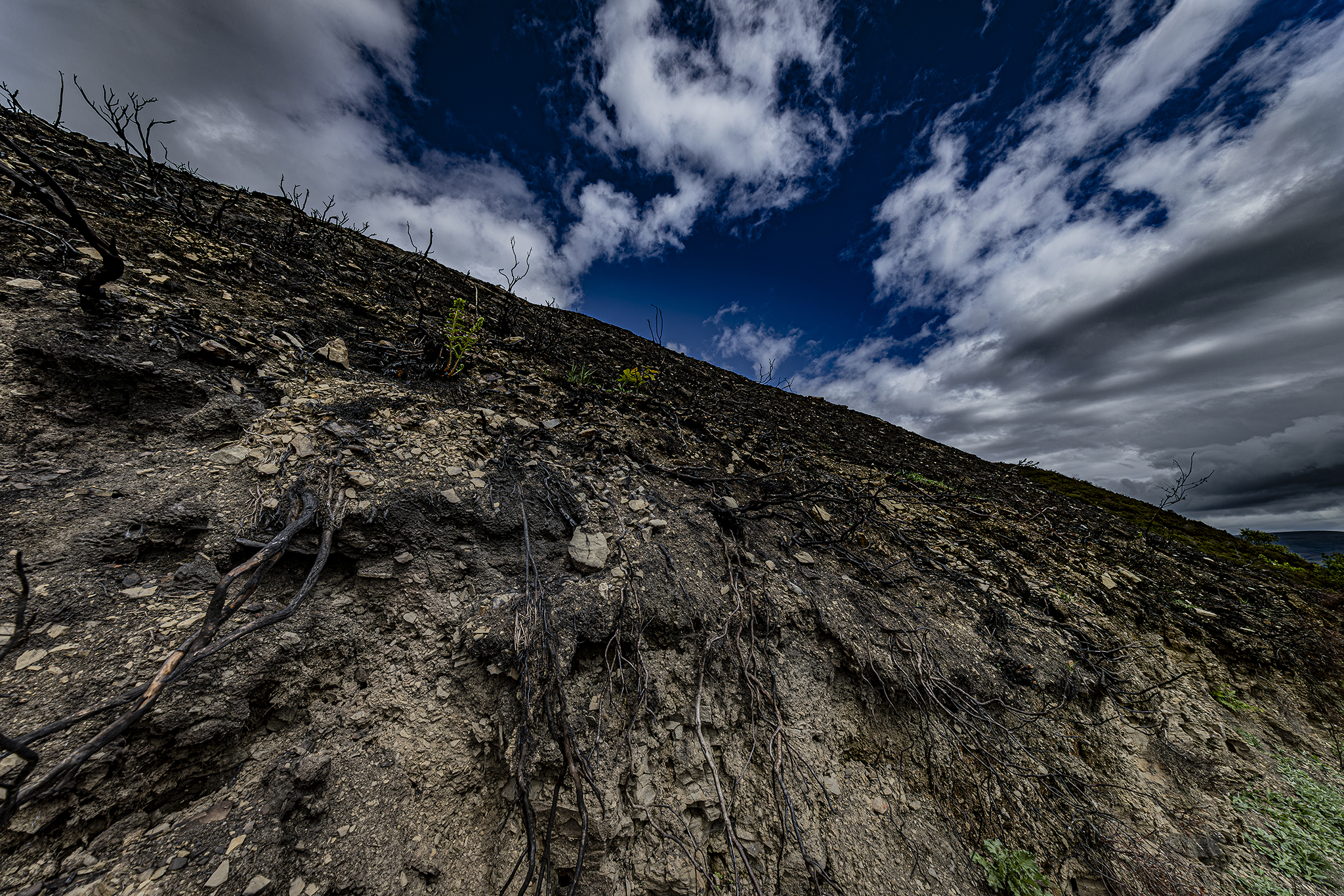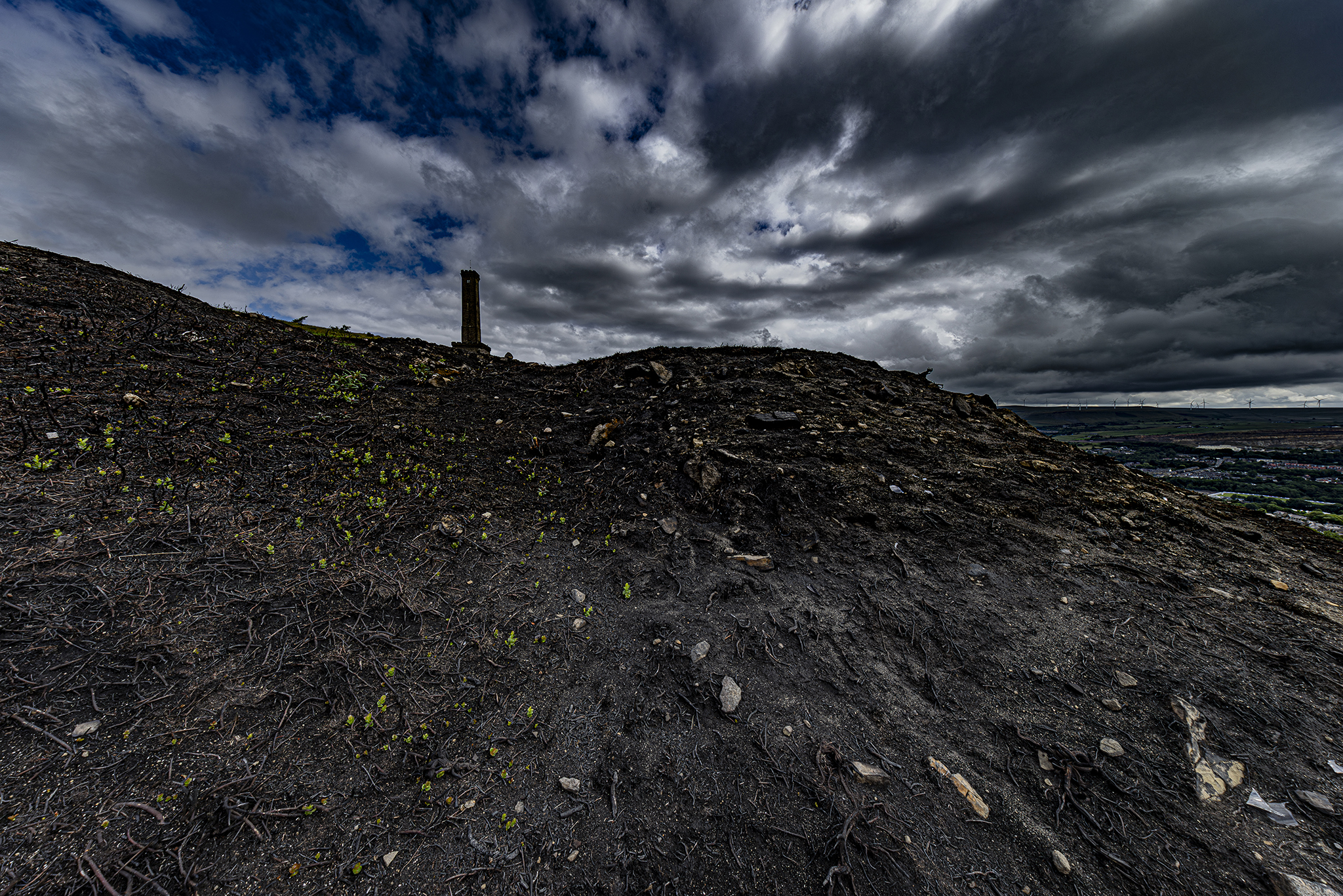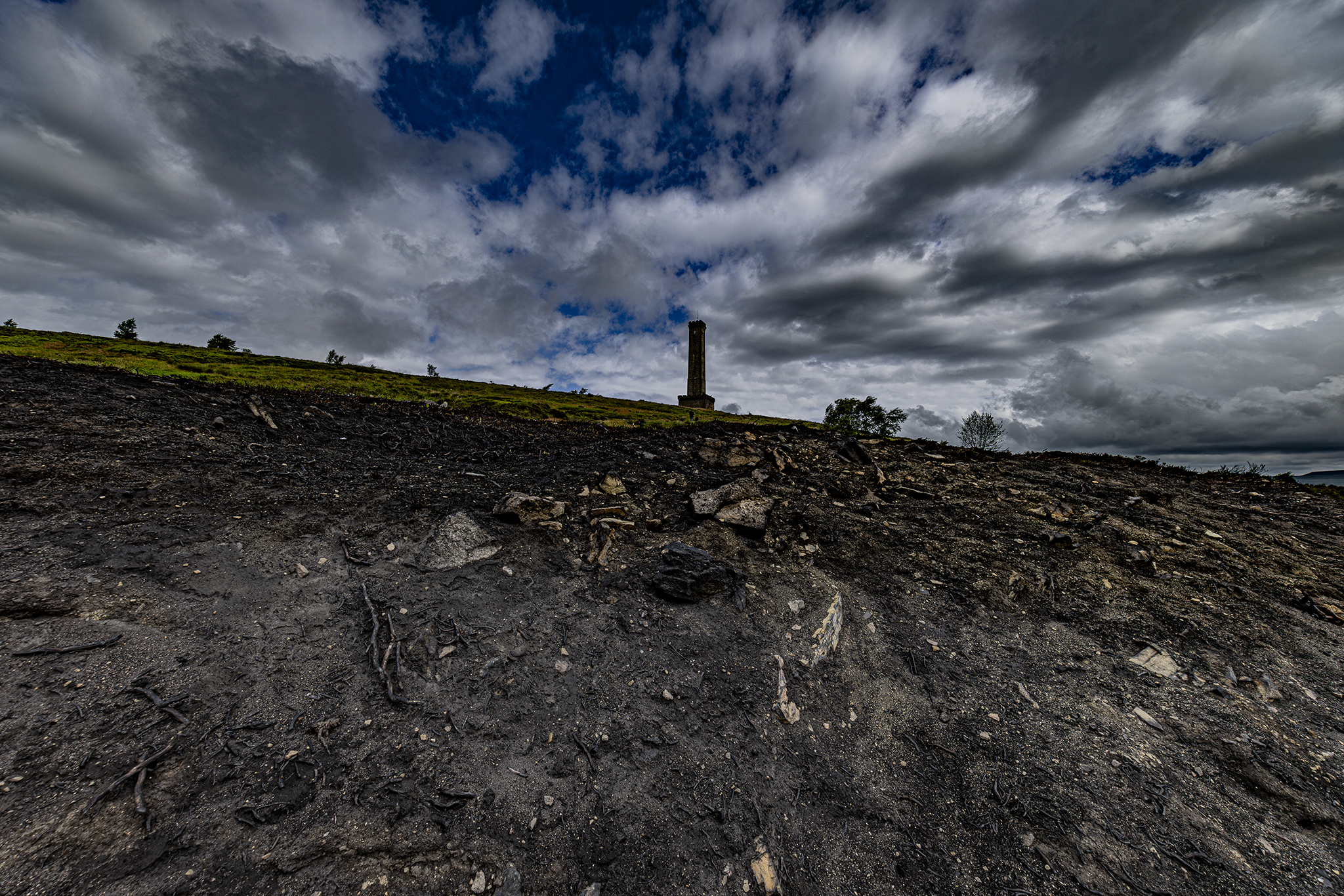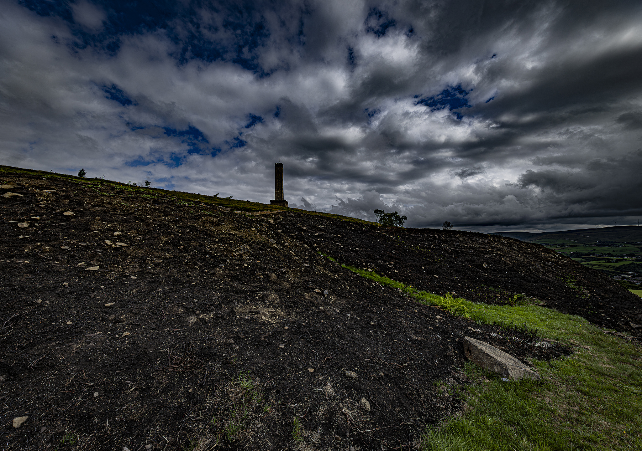 Holcombe Hill after the grass fires. A normally picture postcard location looks barren and dramatic. Just shows how fragile the countryside is in adverse weather.